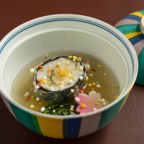 ・お椀 桜鯛と蛤と空豆のポタージュ